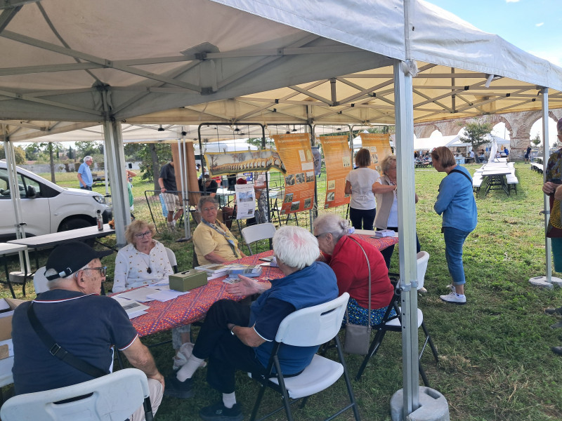 Le samedi étant aussi la fête de l’aqueduc, avec des animations essentiellement familiales, nous avons proposé une activité de dessin-coloriage pour les enfants. 22 enfants, de 8 à 12 ans, se sont arrêtés sur notre stand pour colorier aqueduc ou guerriers romains, ou faire leurs propres dessins.