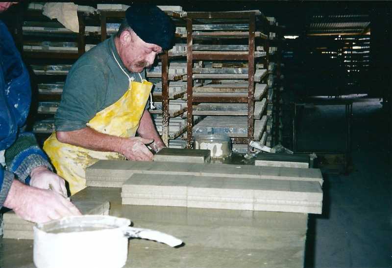 A la tuilerie de Prony le travail manuel est à l’honneur et l’on pourrait voir le lissage de la surface de certains carreaux qui seront, de ce fait d’une qualité meilleure.